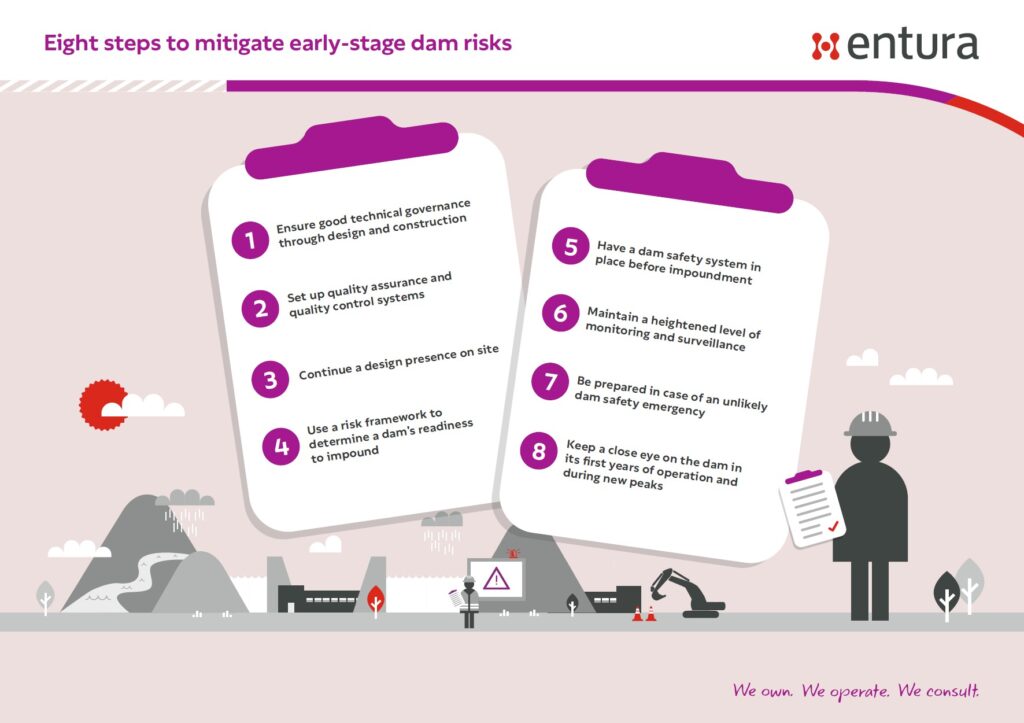 How can risk be mitigated during this first filling and the early years of operation, when the dam is being tested? From our experience, these practical steps can help reduce the risk (click each step for more details):