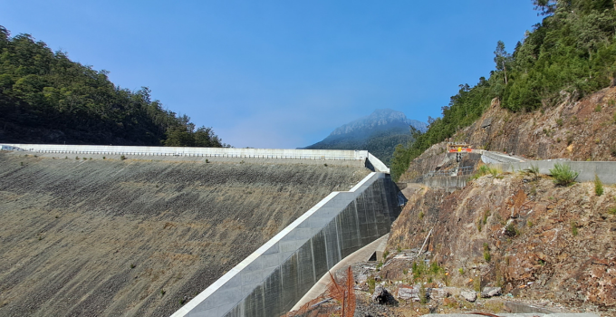 Delivering these works was not without challenges. The site’s remote location, steep topography, annual spill events and high rainfall required careful planning and risk management. Lake level forecasting, robust dam safety emergency plans, and scheduling work for lower flood-risk months allowed construction to proceed safely despite several live spillway events. Hydro Tasmania, AECOM, Hazell Bros and Entura worked to find practical solutions to logistical and safety challenges.